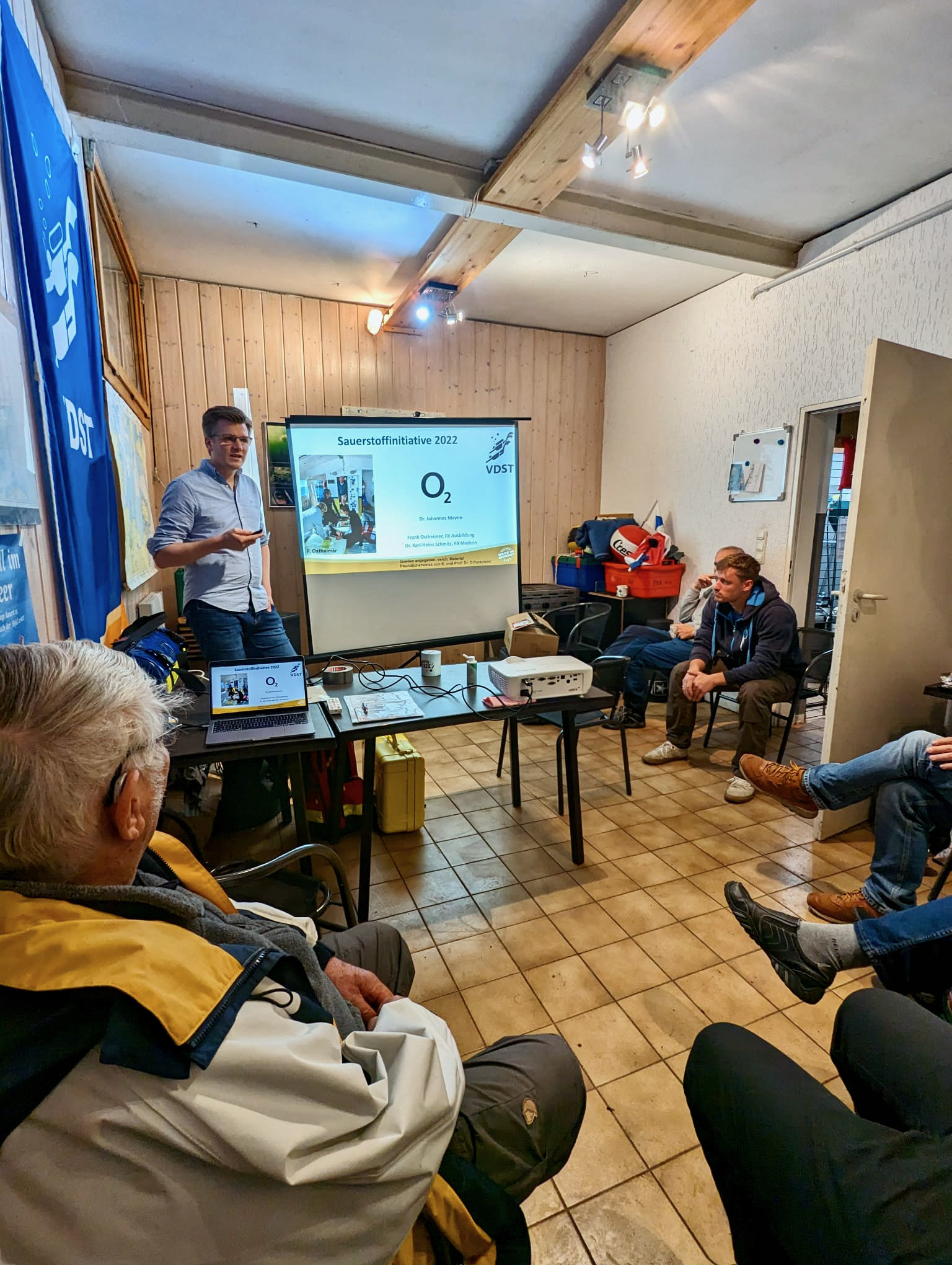 Glücklicherweise durften wir den stellvertretenden Landesverbandsarzt des VDST Tauchsport Landesverbands Schleswig-Holstein, Dr. Johannes Meyne bei uns begrüßen. Als langjähriges Vereinsmitglied und Trainer hatte er sich bereit erklärt, uns mit Rat und Tat zur Verfügung zu stehen und eine Einführung in das Thema zu geben.