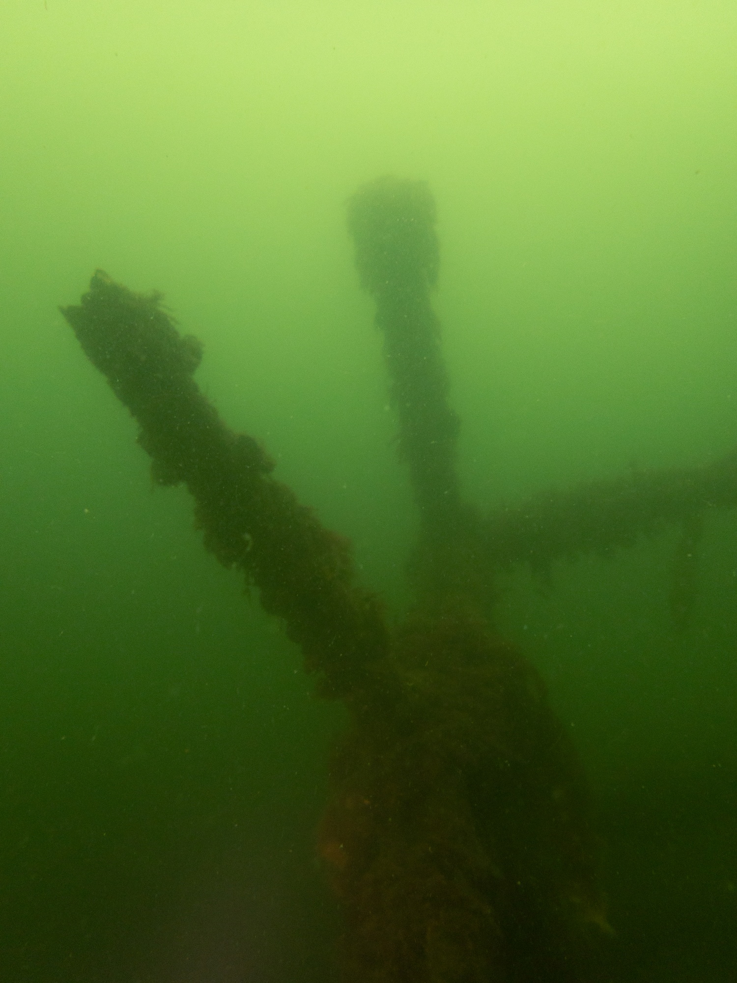 Der erste Tauchgang führte uns mit dem Boot hinaus zum Wrack eines Dock-Tors, einem Dock-Tor, das in der Silvesternacht 2006 gesunken ist. Das Wrack liegt in einer Tiefe von etwa 4 bis 15 Metern und bietet durch seine gut zugängliche Lage ideale Bedingungen für Hobby- und Sporttaucher.